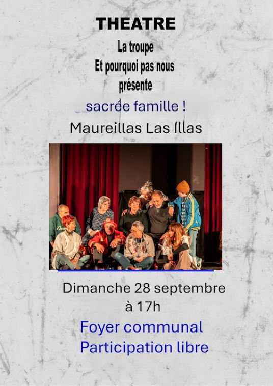 L'association Et Pourquoi Pas, organise sa pièce de théâtre "Sacrée Famille" dimanche 28 septembre à 17h au foyer communal de Maureillas-las-Illas.